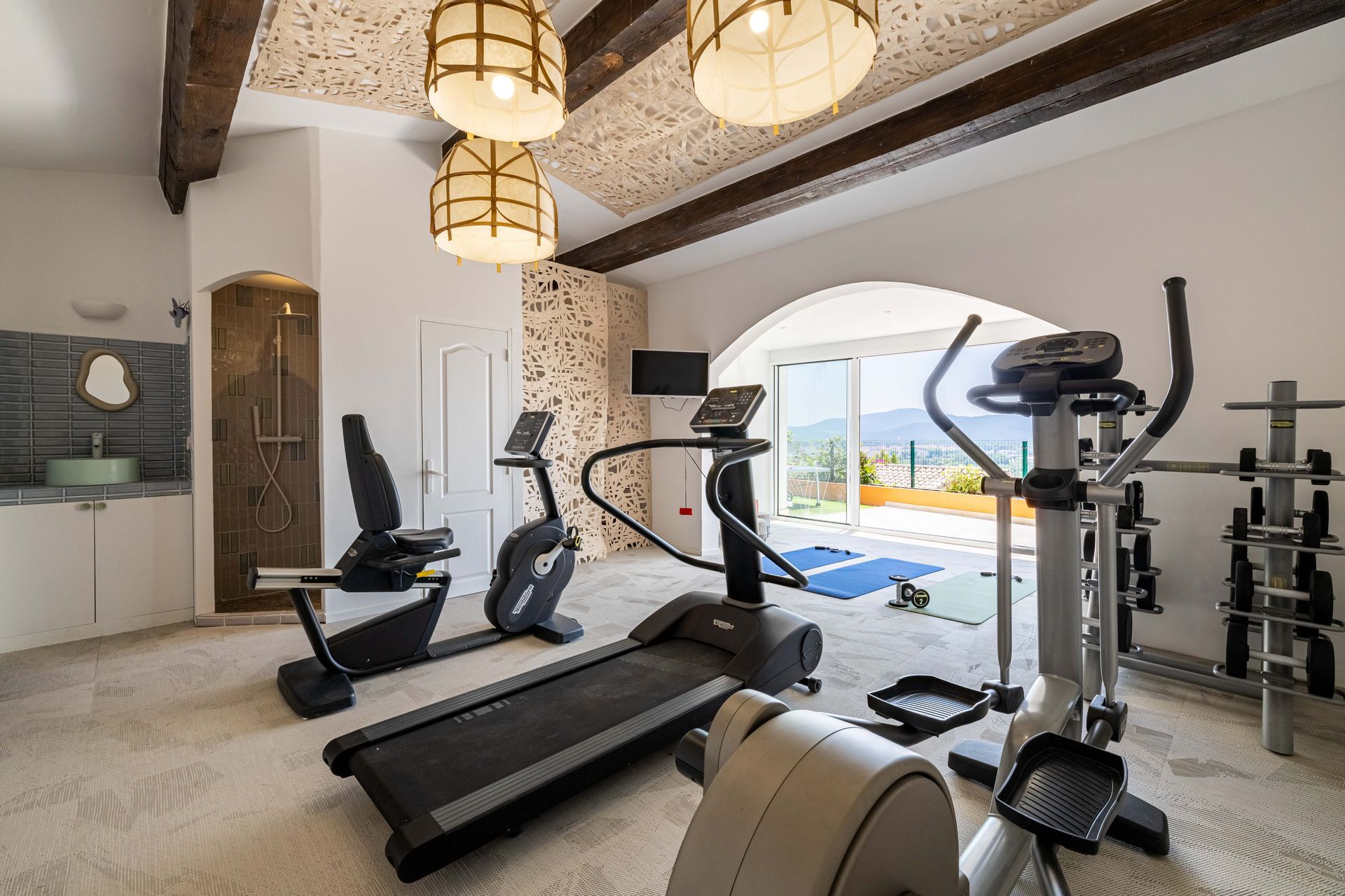 When you wake up at The Villa, watch the golden dawn from your terrace before heading to the infinity pool for a morning swim. After an al fresco breakfast, followed by a workout in the fitness room, take time to explore Grimaud, wandering its picturesque streets, discovering its shops and savouring the local cuisine in one of the many restaurants. Back home, why not play a game of tennis or pétanque with your family? And to round off your perfect day, prepare a barbecue or plancha dinner, while watching the sun set over the Côte d'Azur.